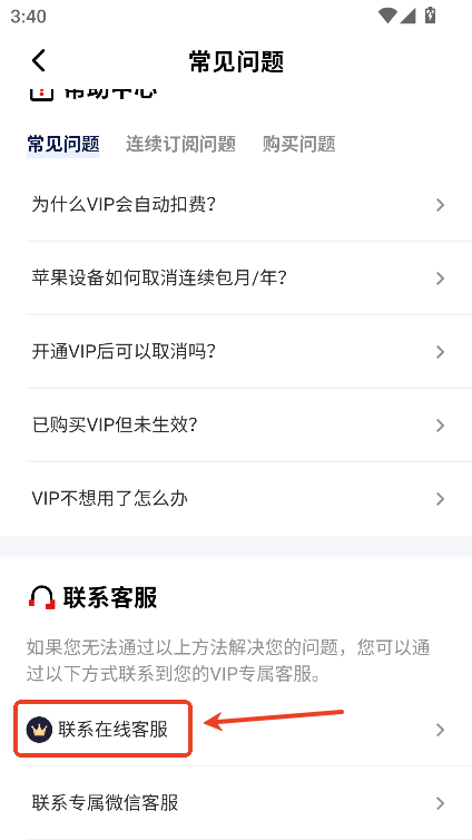 2.向下滑动选择在线客服