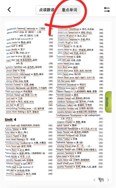 2.把教材里的单词表作为拍摄对象,App具备连续拍摄多页的功能,能够让你一次性完成整个单词表的拍摄,十分便捷。