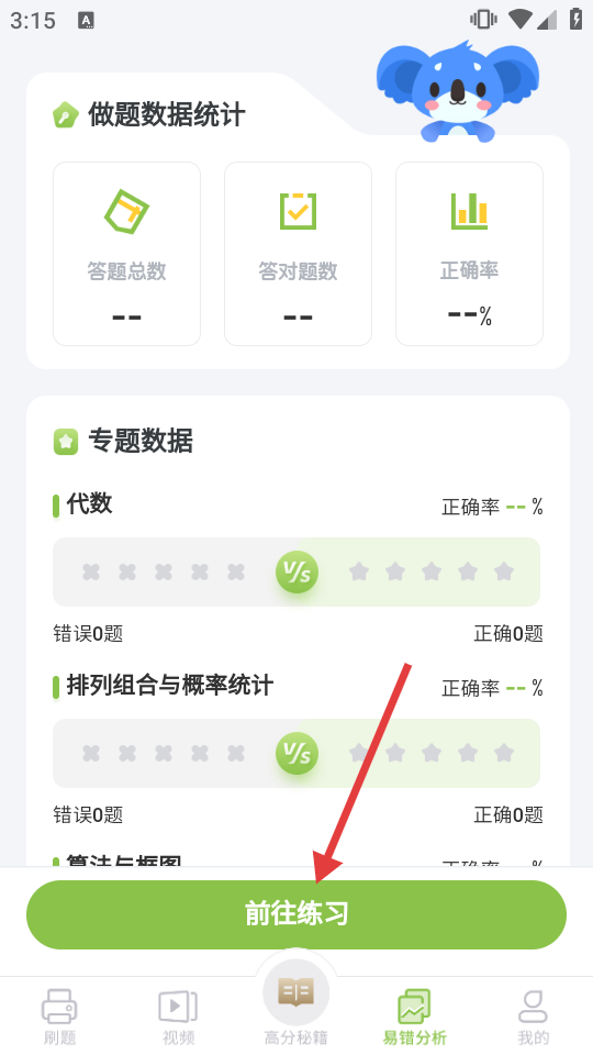 2、在易错分析页面,点击【前往练习】按钮,即可进入章节选择页面。
