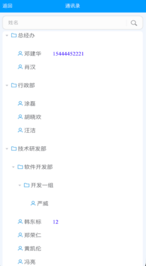 3)通讯录显示功能可协助用户迅速查找与查看同事的联系方式,便于沟通协作。