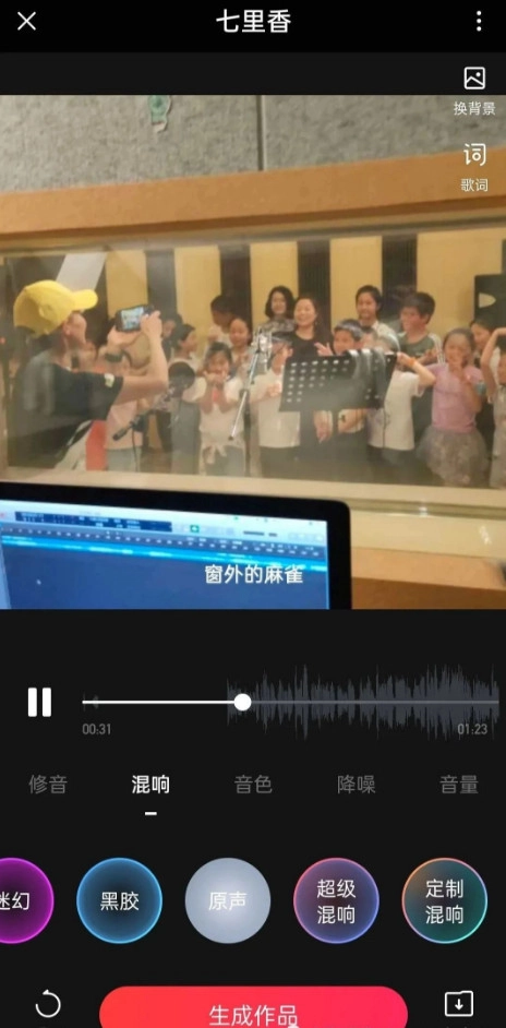 录制完成之后,我们调节混响,选择原声