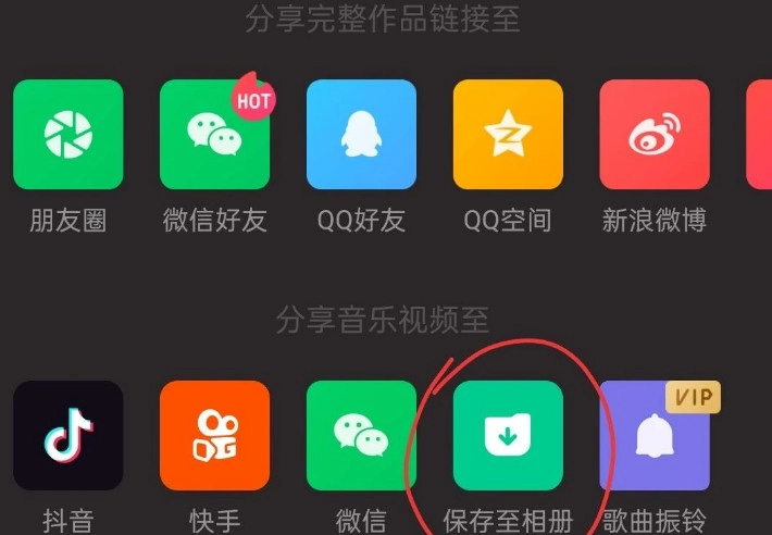 选择分享音乐视频到相册(保留全长不要截取)