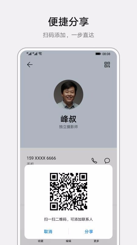 4.便捷的分享途径,优化了联系方式的交换步骤,借助多种渠道能快速把名片分享给对方。