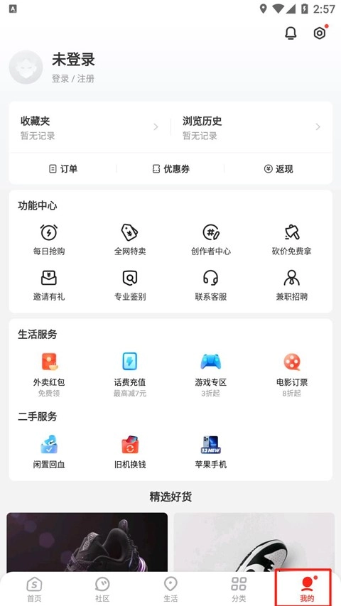 进入识货,点击我的页面