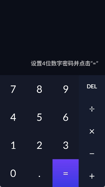2. 设置一个4位数的密码,并点击“=”号来确定密码。