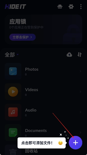 4. 进入软件后,点击“+”号可以添加需要加密的文件。