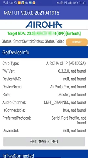 airoha检测软件也就是大家熟悉的洛达芯片检测软件,它的安装包名叫airoha_sdk_ut。这款airoha检测软件中文版的主要作用是通过耳机芯片的检测从而判断该耳机是否是正品,常常被用来检测airpod耳机的真伪。用过airohasdk这款软件的都知道它究竟有多可靠。可一键获取耳机芯片的型号、固件版本以及电池电量等信息!