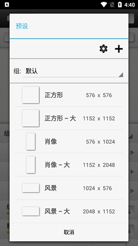 4、选择我们需要的画布尺寸,或输入自定义尺寸。