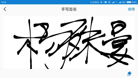 3. 在手机上手写输入自己的名字,不满意可撤销重写。