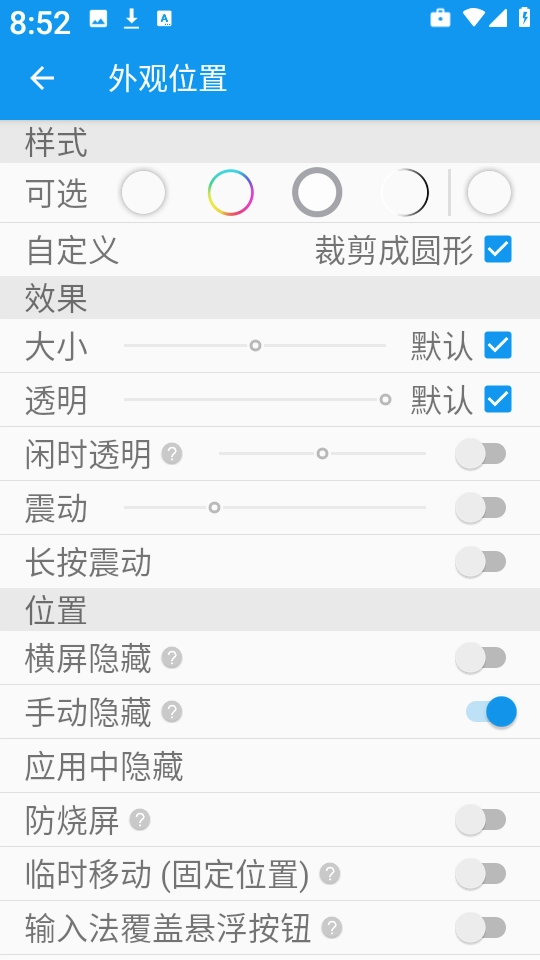 3.手动隐藏悬浮球时,快速加长距离移动即可;若想固定悬浮球位置,可在外观设置中打开临时移动功能。