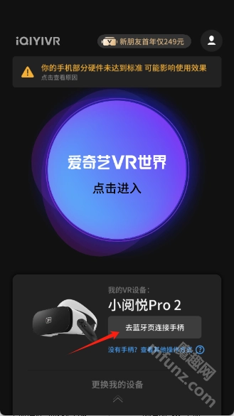 2.若购买了手柄,可通过蓝牙连接后在爱奇艺VR 中选择设备并按照指示连接。