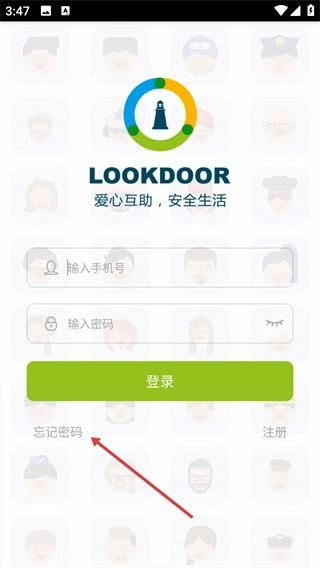 1、在【LOOKDOOR】登录页面点击【忘记密码】选项,进入密码找回相关的操作流程,可重置账号密码。