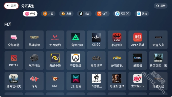 3.点击分区类型,里面会有很多游戏,大家可以根据想了解的游戏来操作