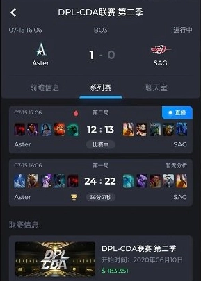 这个软件会记录所有战队的数据,可以让大家知道最新有哪些比赛可以看。