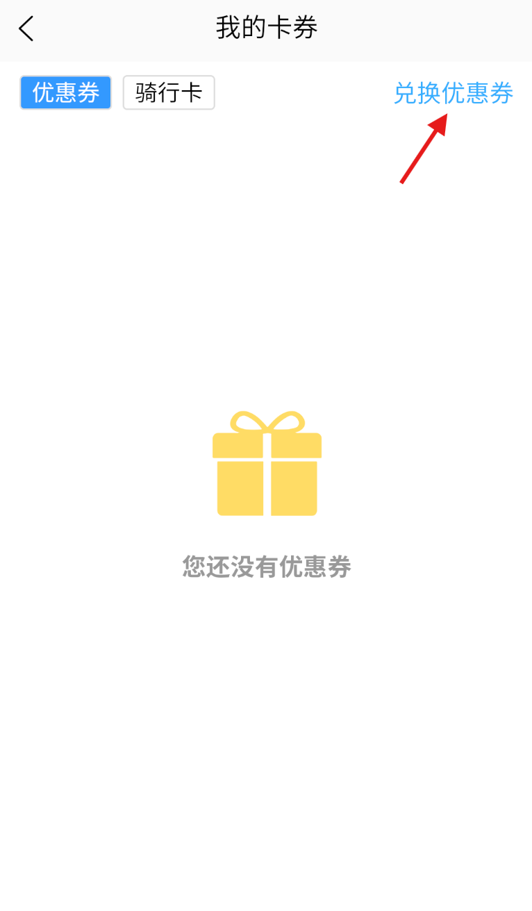 3、进入卡券管理界面后,找到右上角的“兑换优惠券”按钮并点击,即可进入优惠券兑换页面。