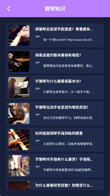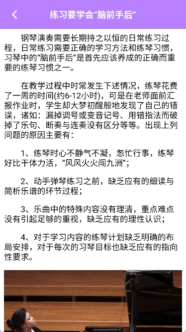 2. 在线查看钢琴知识的详细讲解,积累知识。