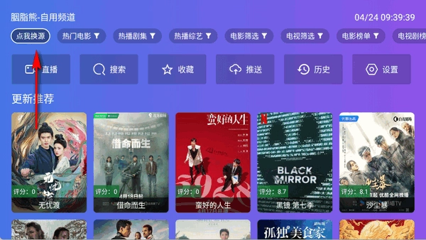 1.进入老谭酸菜TV盒子首页,点击点我换源