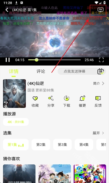 支持弹幕发送,可选择不同颜色的弹幕表达想法和感受,还能查看历史弹幕,边看边聊,增加追剧的趣味性。