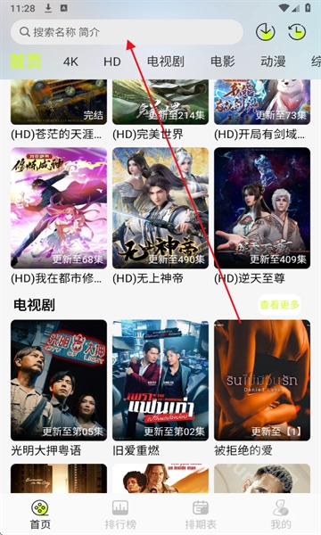 1、打开榴莲4K软件,点击上方搜索找寻自己想要的内容