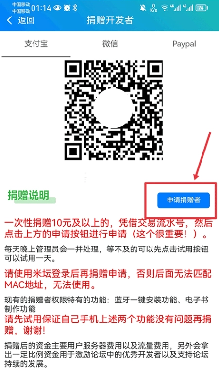 注:申请捐赠者后可获得蓝牙一键安装功能、电子书制作功能
