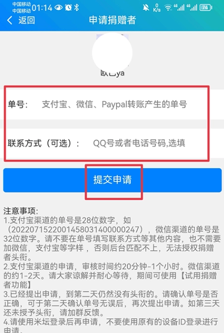 3.然后将转账产生的单号和联系方式填写完成后点击提交申请即可