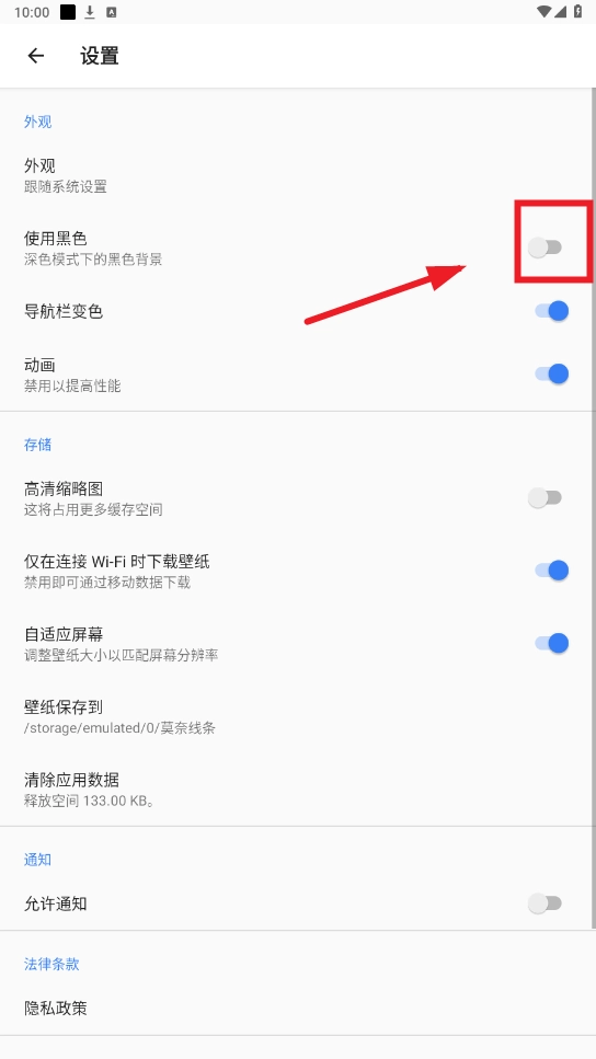 3.在设置中找到“使用黑色”选项并打开