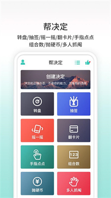 帮决定是一款专为选择困难症人群设计的实用决策软件,能助力用户快速做出选择。用户可便捷挑选决定板块、设置参与人数,软件内还包含多样小游戏,能有效活跃团建与聚会的氛围。其功能简洁易操作,配备了各类决定模板与选项设置,用户也能将自己的决定分享给好友。借助帮决定,用户可以迅速定位所需内容,挑选趣味互动游戏,从而增强聚会的互动感。