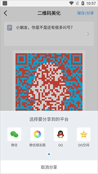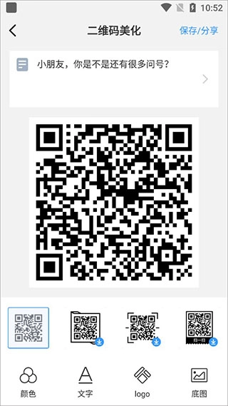 2、花样二维码:支持设置二维码的背景色和前景色,添加中间的Logo,文字描述,二维码水印,制作专属个性二维码,不再是单调的黑白色;