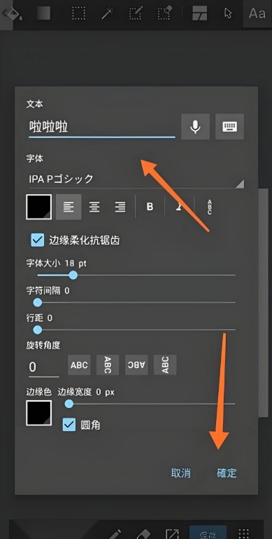4、然后就会弹出文字对话框,我们输入对应的文字,也可以选择文字大小等属性, 输入之后,点击确定即可;