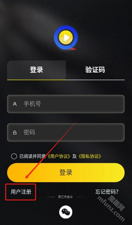 3、没有账号的新用户点击下方用户注册