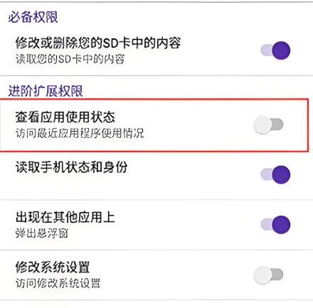 3、开启【查看应用使用状态】按钮,详细的进行查看应用使用状态;