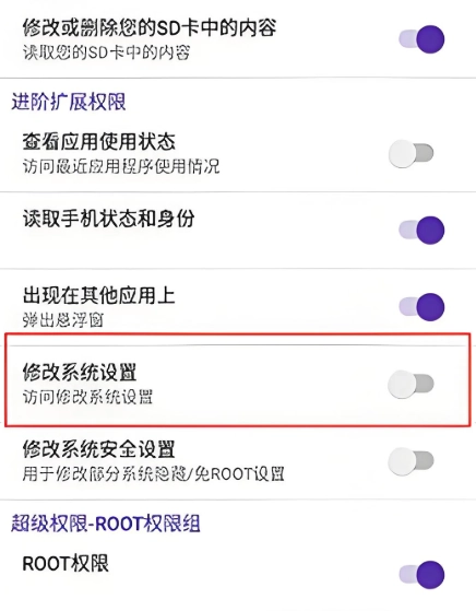 4、开启【修改系统设置】,可以修改手机的桌面组件。