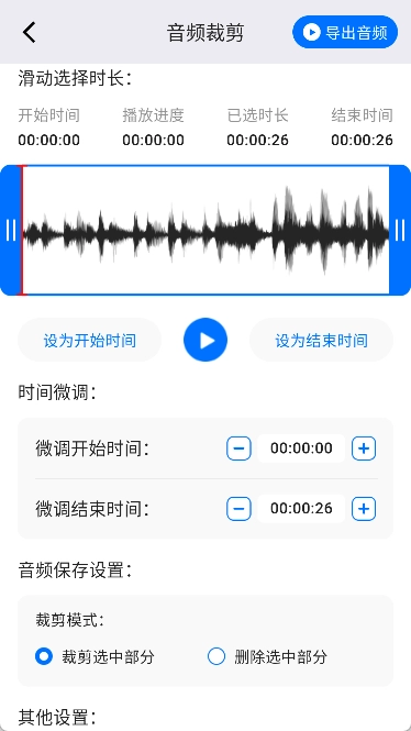 2. 打开软件,选择音频文件并截取出自己需要的部分。