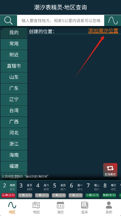 1、在潮汐表精灵首页,点击“添加潮汐位置”;