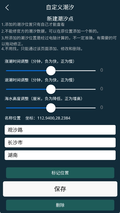 3、我们还可以可以根据地图精确定位并添加潮汐点。