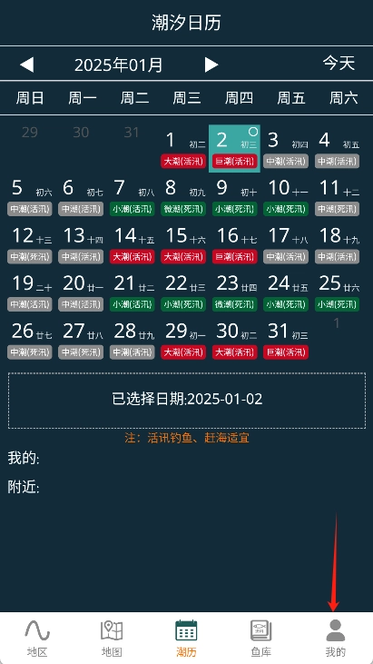 1、在潮汐表精灵中进入“我的”界面;