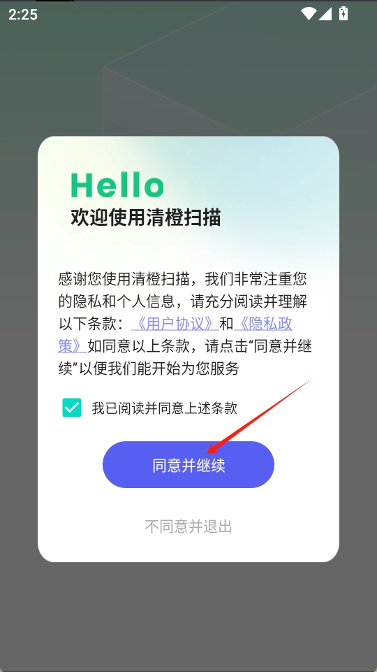1.安装并打开清橙扫描,勾选我已阅读并同意,并点击同意并继续