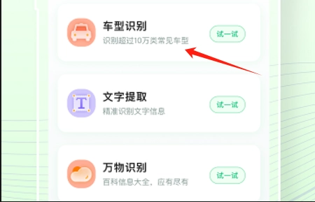 2.点击车型识别功能通过扫描获取车型信息,文字提取功能扫描图片文字后复制粘贴
