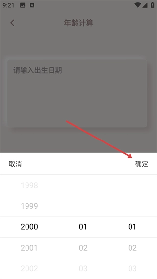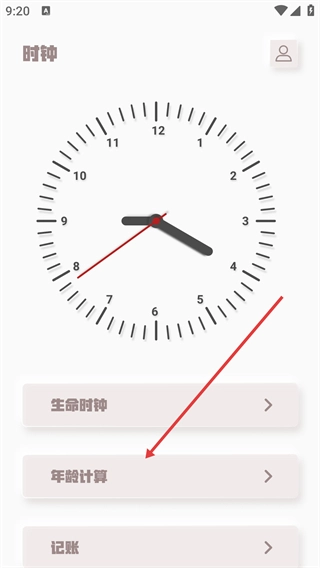 1、在显示【时钟】的界面,点击【年龄计算】选项,进入年龄计算功能页面。