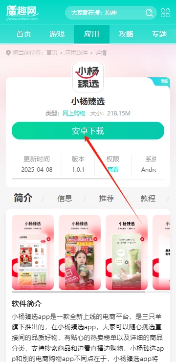 小杨臻选已上线,大家可以手机或电脑浏览器访问魔趣网给大家提供的小杨臻选地址https://www.mfunz.com/soft/9176.html,点击即可。