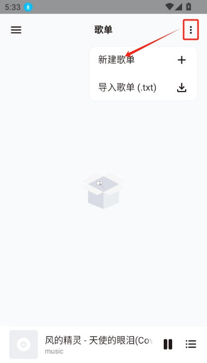 2.在歌单中点击右上角三点,选择“导入歌单”。