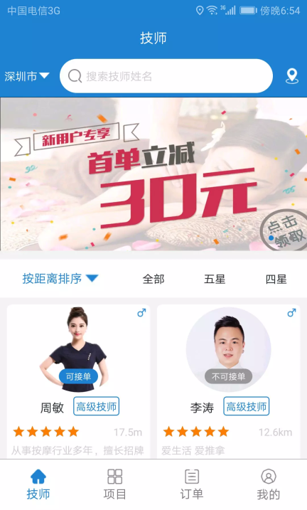 2、根据服务类型,迅速就能够选择技师;