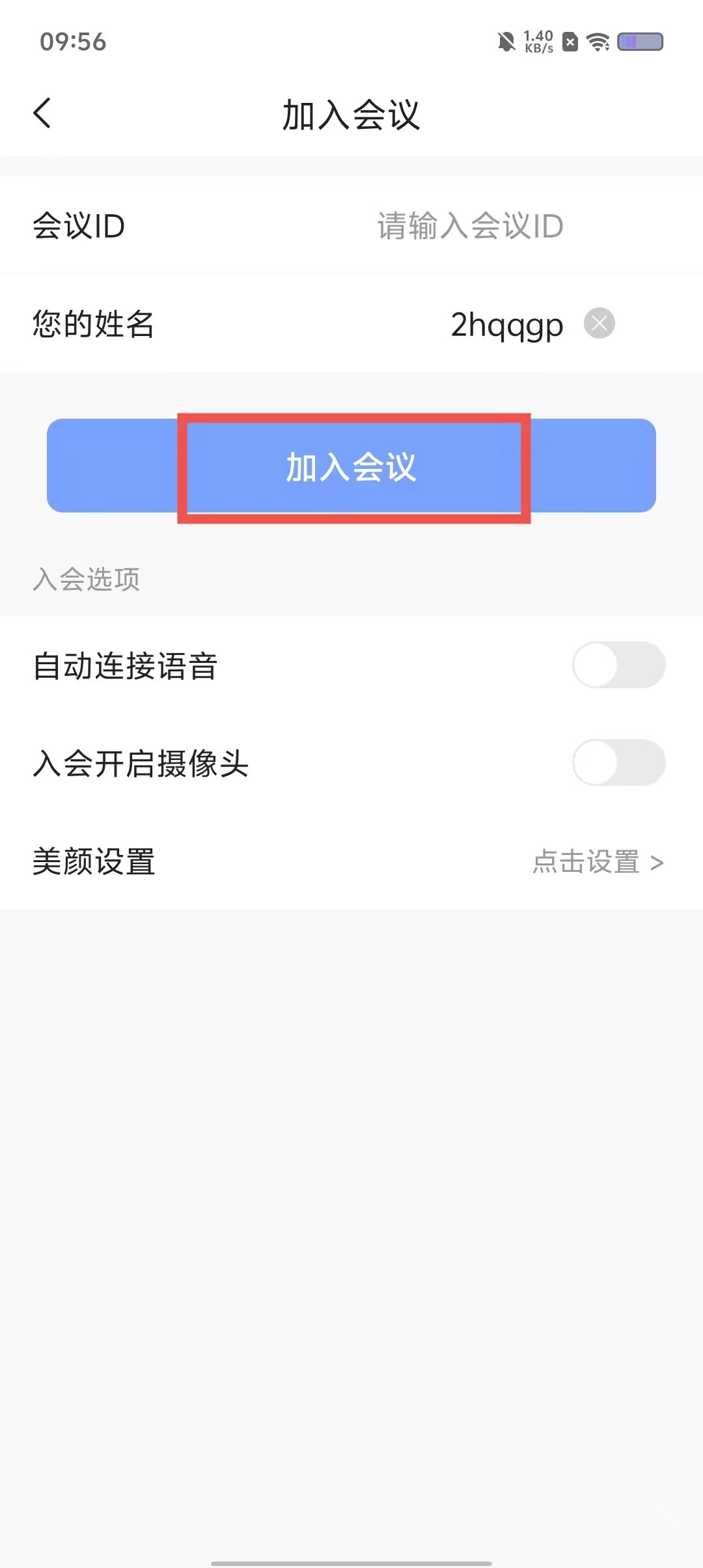 2、输入会议id,姓名,设置入会内容后即可快速加速会议。