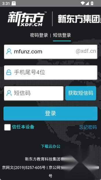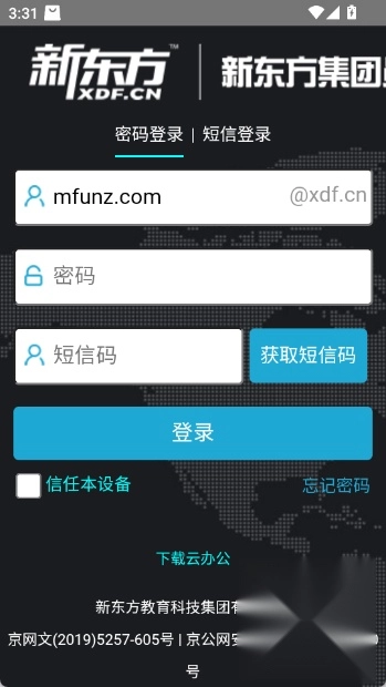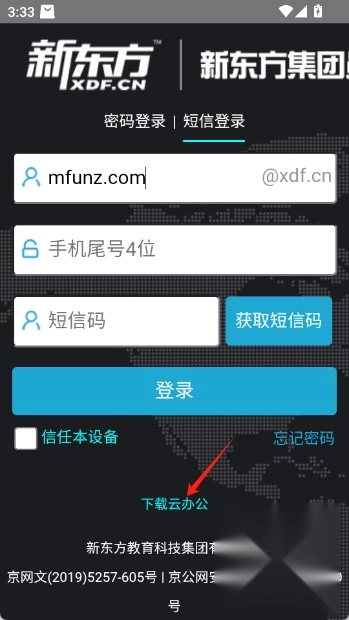 2.然后在登录界面点击云办公