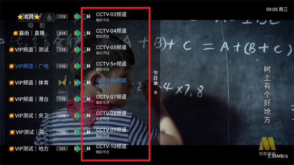 3. 在软件左侧的节目频道栏中,选择我们想观看的节目。