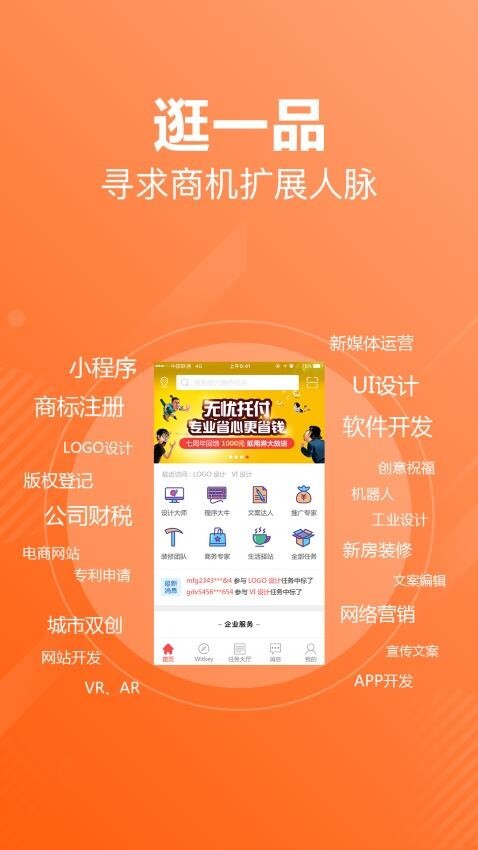 【一品威客接单助手】,威客手机接单的实用工具,能帮助用户随时随地承接任务订单,及时掌握任务动态,还可在线即时沟通信息,是威客真正理想的抢单神器(优于猪八戒抢单宝等同类接单工具)。无论是接外包还是做任务,都能让创业变得更简单。该助手提供设计、开发、文案、装修、营销等多种类型的任务,涵盖LOGO设计、网站开发、VI设计、文案策划、装修设计、开发等具体内容。