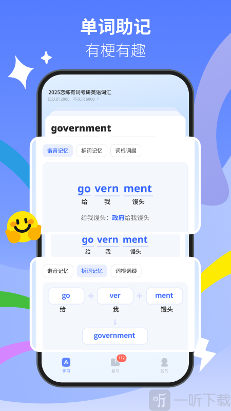 想学英语却不知从何入手?那就来试试松果单词吧!这款应用特别适合英语学习者,从积累词汇量开始,助你逐步实现学习自由。它的学习方式十分有趣,不会让你感到枯燥乏味,独创的搞笑记忆法融合了中文谐音、词根拆解和单词拓展,让每个单词都能深深印在你的脑海里!所有内容完全免费,你可以随时随地学习,还能自定义学习模式,轻松实现出口成章!