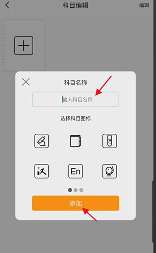 4、进入科目编辑页面,点击下方的「+」按钮添加新科目。