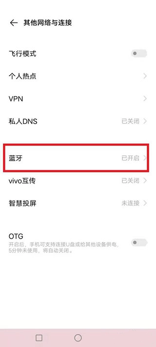 2、在连接分类中找到「蓝牙」选项,点击进入并打开蓝牙开关。