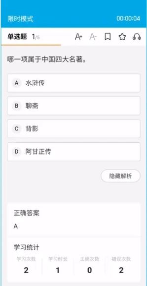 5、设置答题时长,时间到显示正确答案和解析,不可再答。